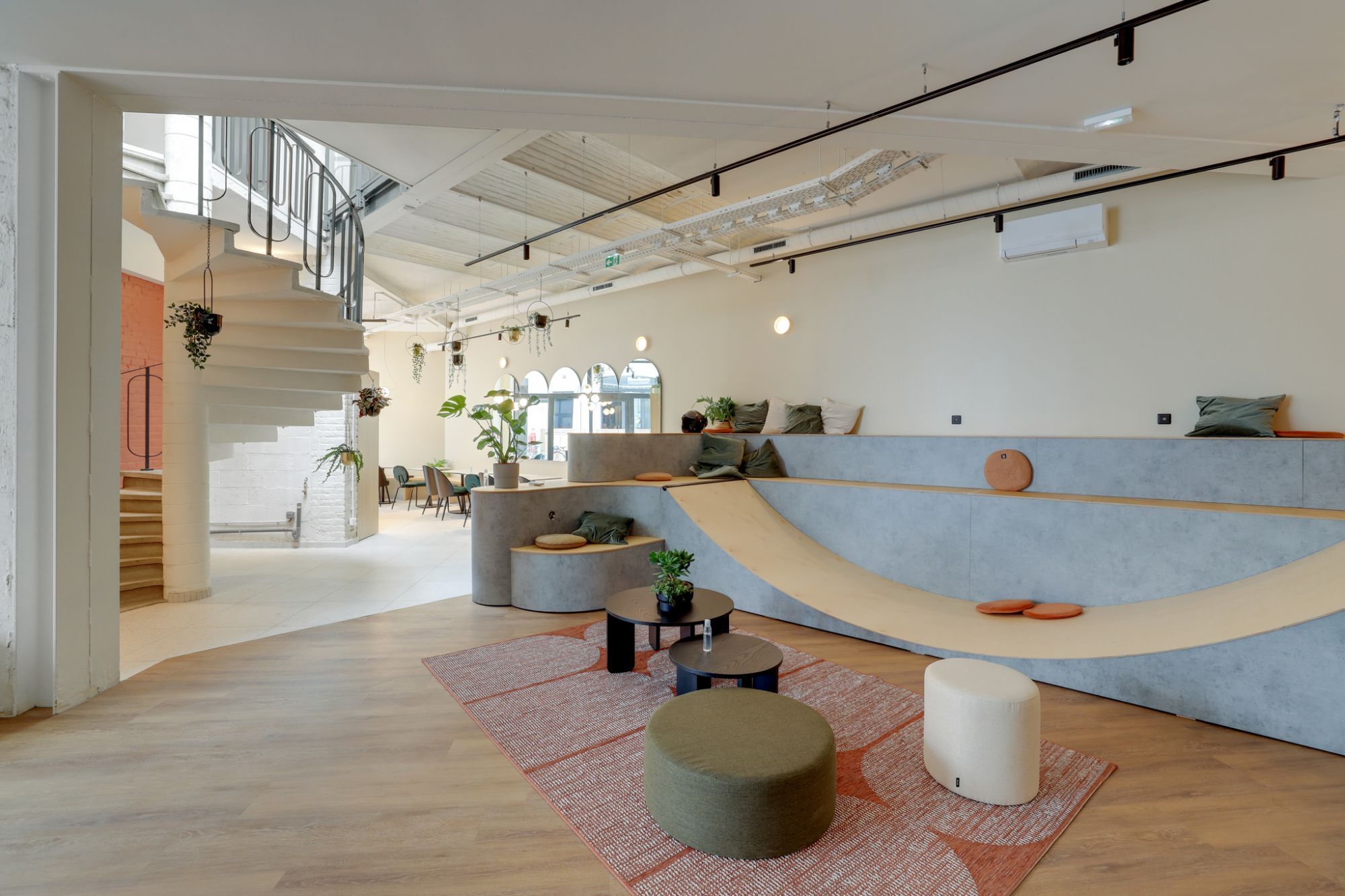 Le gradin agencé, mêlant courbes et lignes droites